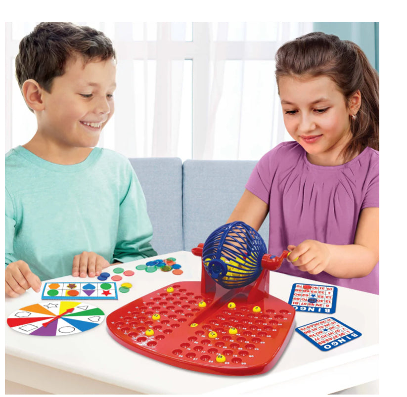 Everybody loves a game of Bingo! This set features all the parts to play either the classic version of Bingo or a basic kids Colours & Shapes Bingo. Match the numbers on the selected balls with your game card and the first to match all numbers wins! For colours & shapes bingo, learn 6 colours and 6 shapes. Match colours, shapes or combinations. For 2 - 13 players. Recommended for ages 6 and over.