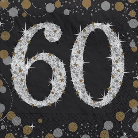 60th Sparkling Celeb Small Beverage Napkins, 16 Count