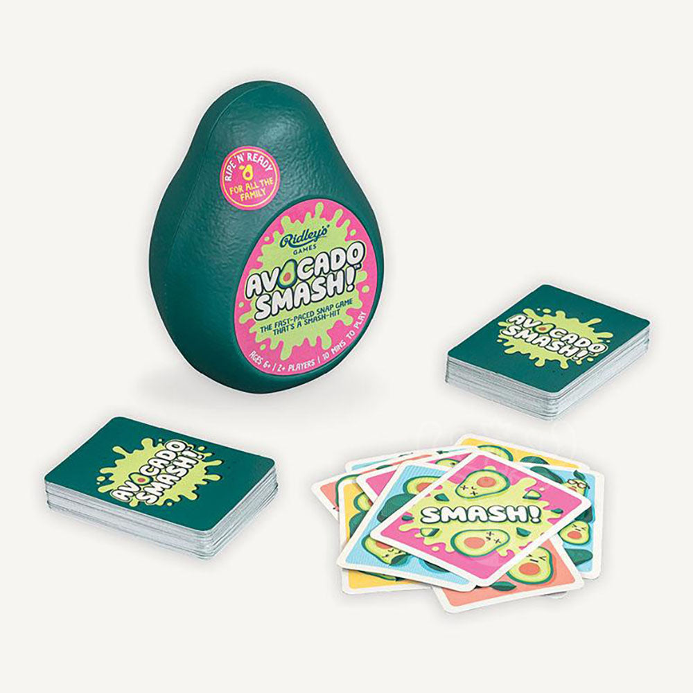 Avocado Smash is a fast-paced snap variant where the first player to get rid of their cards is the winner. The first player starts at one and the next players follow in sequence up to 15 avocados, then it goes back to one avocado and so on. If a card happens to match the number being said on that turn then that is a smash! All players have to smash their hands down in the middle of the table and the last player to react takes all the cards from the center.
