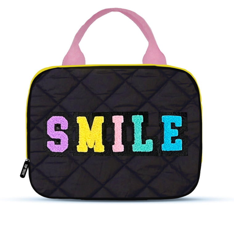 Black Puffer Lunch Box Smile Text Patch