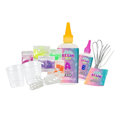 CONTAINS; 2 bottles of epoxy resins (AB) 8 silicone molds, 4 bags of glitter