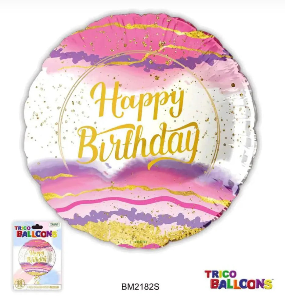 Happy Birthday Marble Foil Balloon