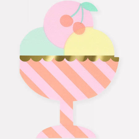 Add a touch of California's sunny vibes to your party setup with these funky ice cream sundae napkins. Featuring whimsical stripes and shiny gold foil details, these napkins will bring a playful and summery feel to any event. Ideal for birthdays, BBQs, picnics, beach parties, and school breaks.