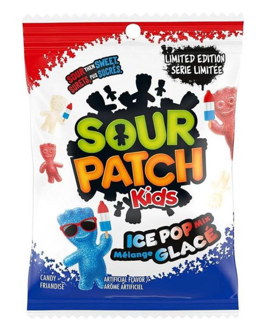 Limited Edition Sour Patch Kids Candy!These Kids are the epitome of cool! The Sour Patch Kids Ice Pop Mix is a flavourful and ultra-chewy candy bursting with the icy taste of the famous Ice Pop!As you unwrap this red, white and blue sour candy!