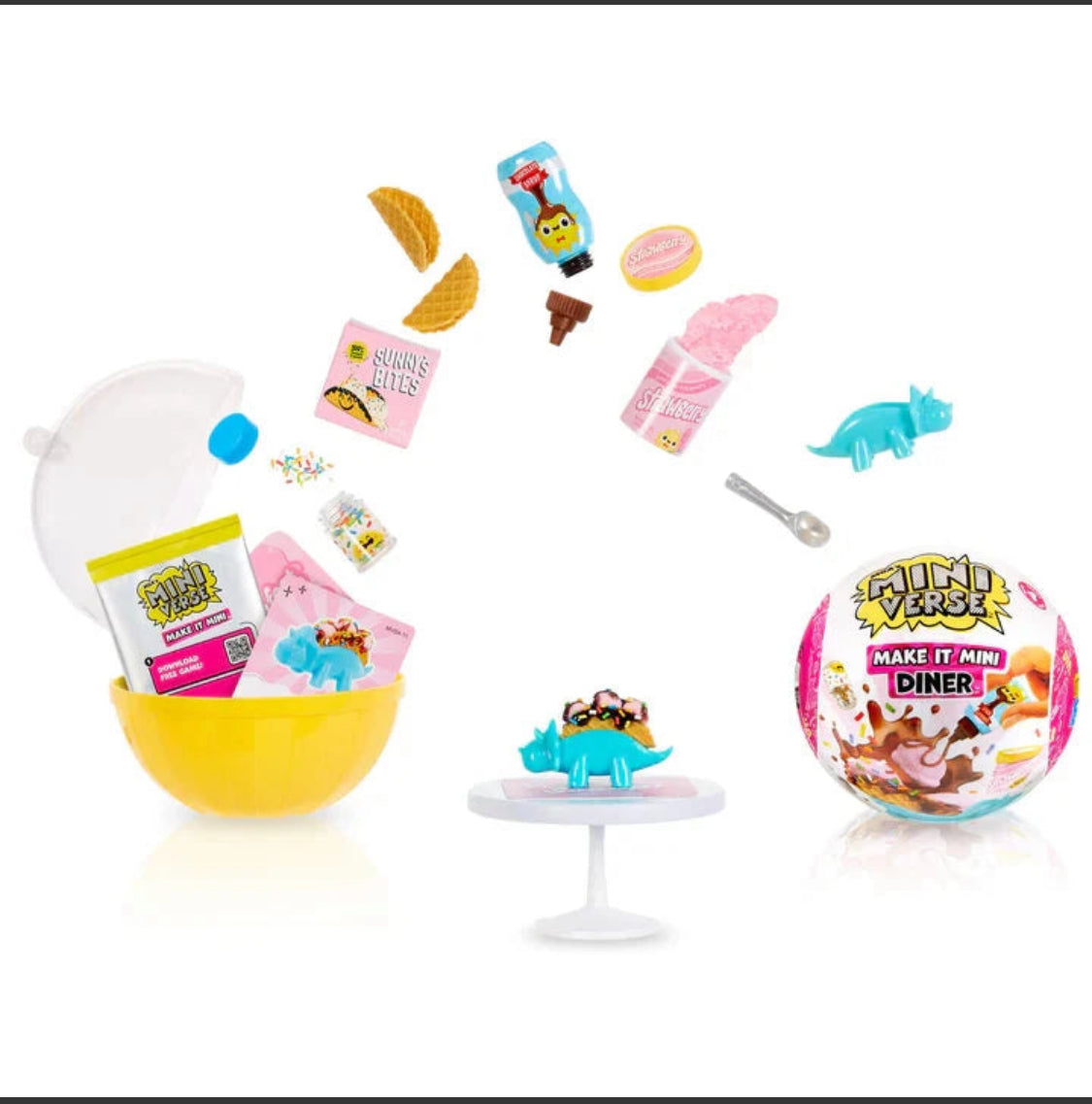 Each ball comes with realistic mini "ingredients" and accessories to make your own mini replicas of your favorite snacks and desserts! Each package is a SURPRISE, so you won't know which mini you have until you unbox it!