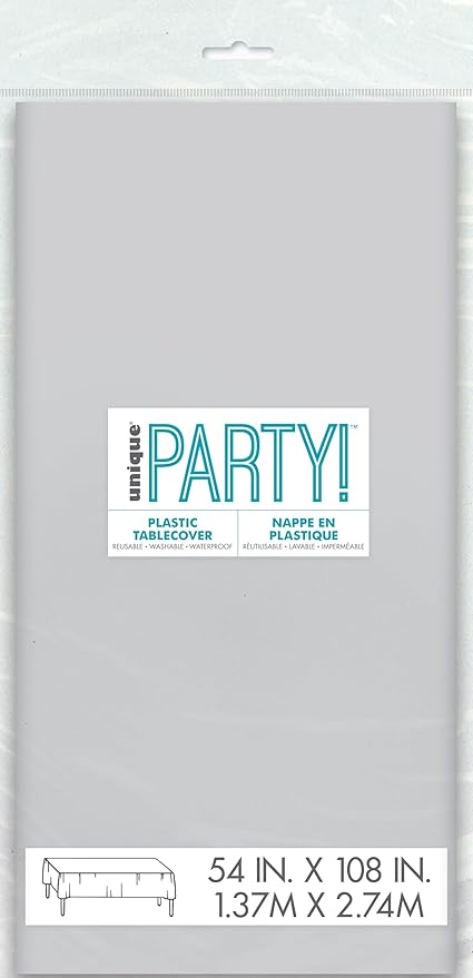 Plastic Table Cover, 54-Inch by 108-Inch, Silver