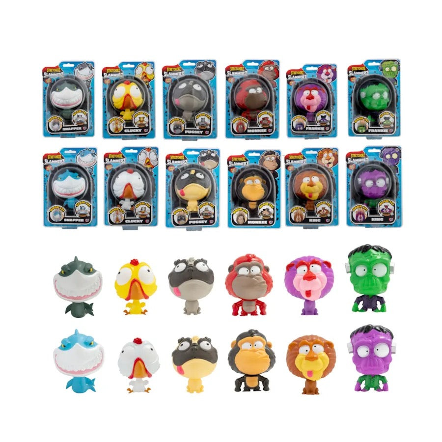 Introducing Stretcherz Slammerz, the ultimate sensory play experience with 12 exciting characters to collect! Offering a unique combination of stretchability and interactive fun. Choose the Stretcherz Slammerz character of your choice and slam him hard into the ground to see him splat! The vibrant designs and playful nature of Stretcherz Slammerz make them a must-have addition to any toy collection. With 6 different characters ranging from the snapper, Clucky, Pugsey, King, Frankie and Monkee! rnStretcherz Slammerz promises hours of interactive play. Collect all 12 characters and dive into the squishy, splattery world of Slammerz today! Suitable for ages 3 years +.