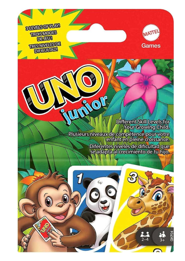- UNO Junior accommodates 2 to 4 players. Although it's perfect for younger UNO fans, its adorable zoo animal graphics will have everyone wanting to play!