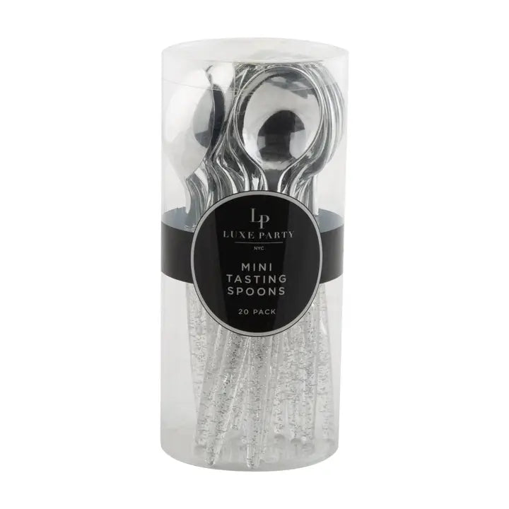 White and Silver Plastic Mini Spoons | 20 Spoons